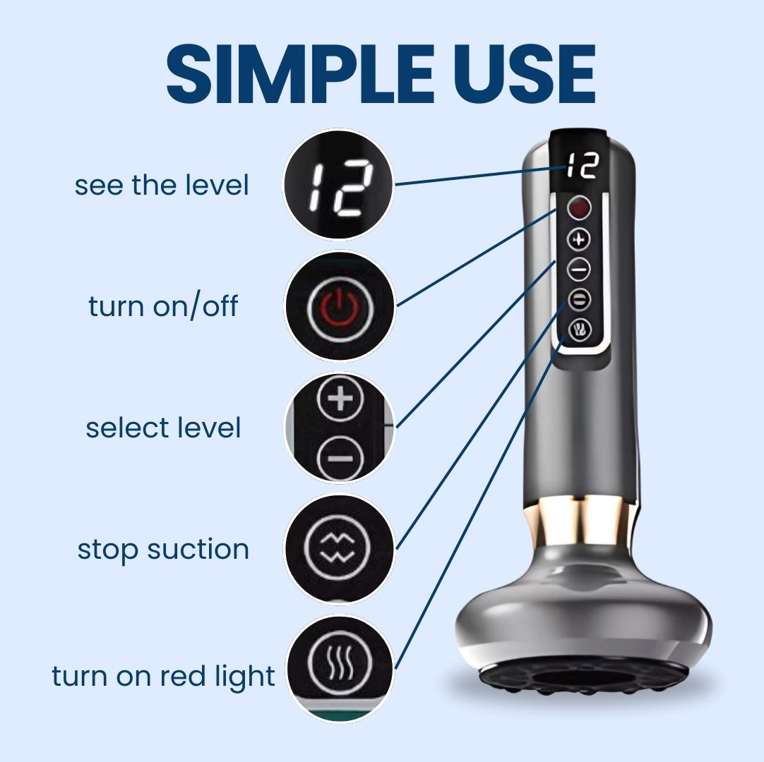 Platzieren Sie das Gerät einfach auf der gewünschten Muskelpartie, wählen Sie die gewünschte Saug- und Rotlichtstärke und lassen Sie die Therapie 10–20 Minuten laufen.