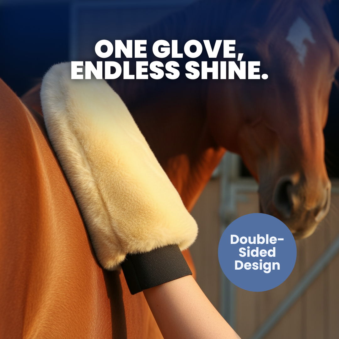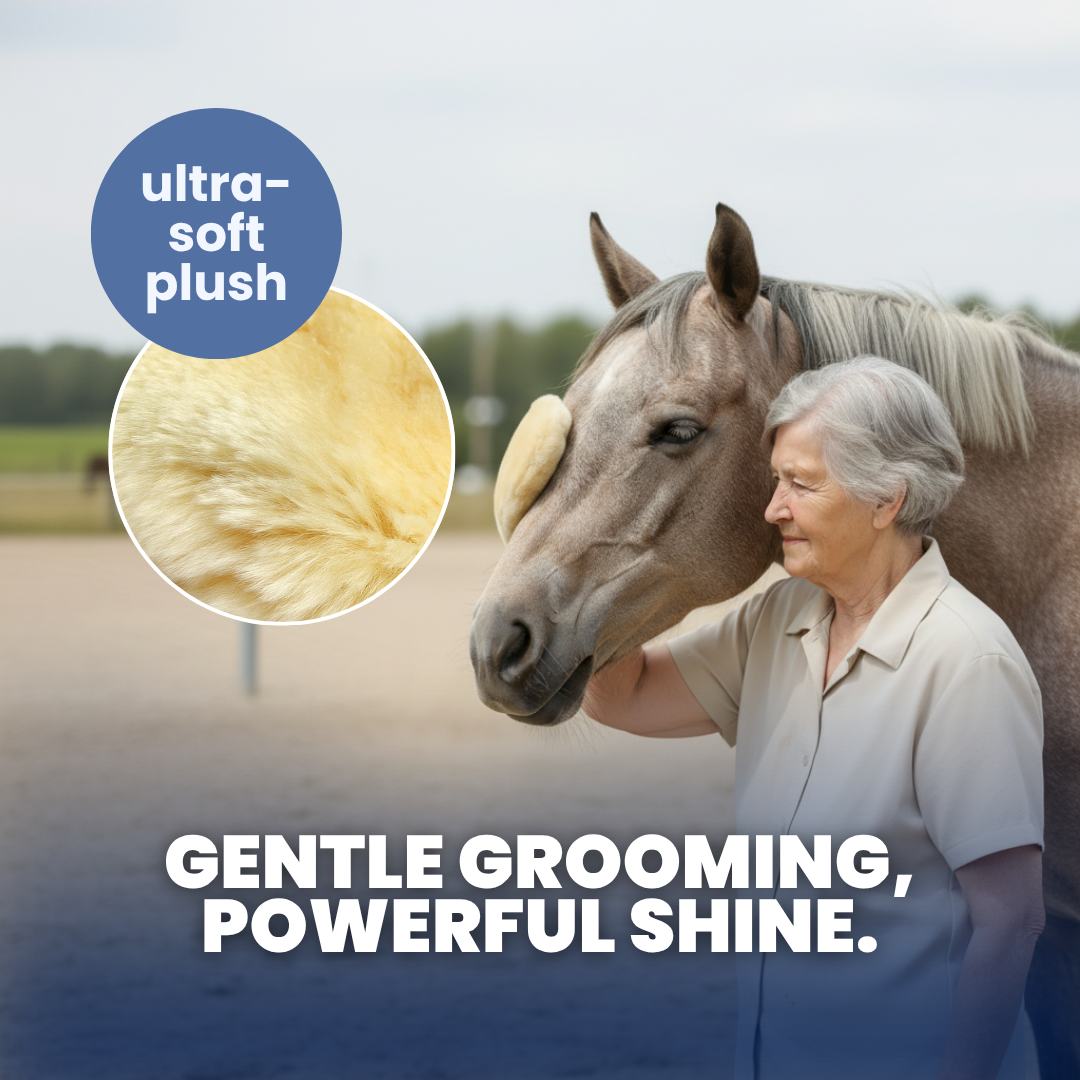 Key Features ✨ Ultra-Soft Plush Material: Gentle on sensitive coats and faces, great for young, clipped, thin-skinned, or senior horses. 🧤 Double-Sided Grooming Surface: Use both sides for dusting, polishing, and finishing shine. 💧 Waterproof Lining: Keep hands dry while grooming wet coats, removing sweat marks, or applying rinse-free shampoos. 📏 Comfort-Fit Elastic Cuff: Secure wrist fit prevents slipping during grooming. 🐎 Multi-Use Barn Essential: Perfect for dusting, finishing shine, wiping eyes/nose, applying conditioning sprays, and post-ride cool downs.
