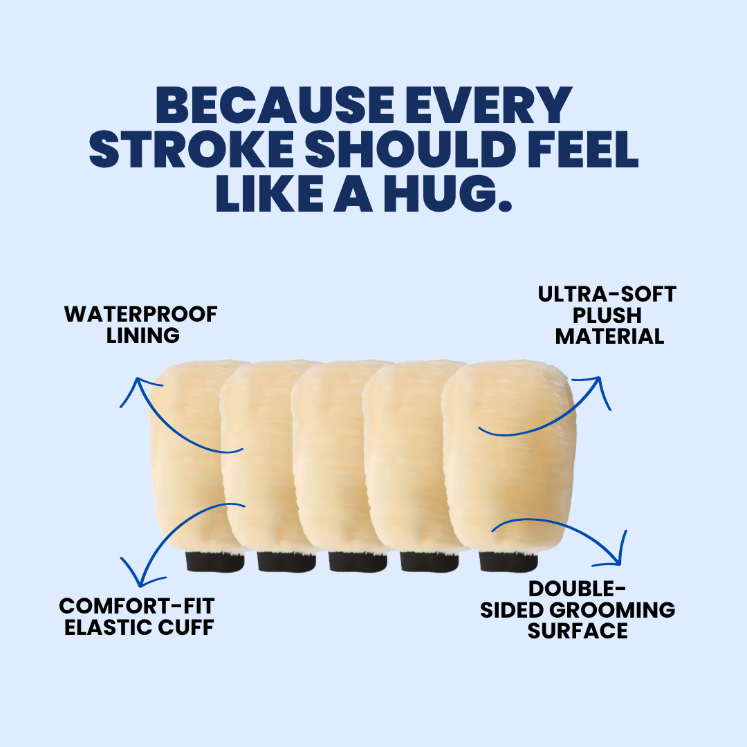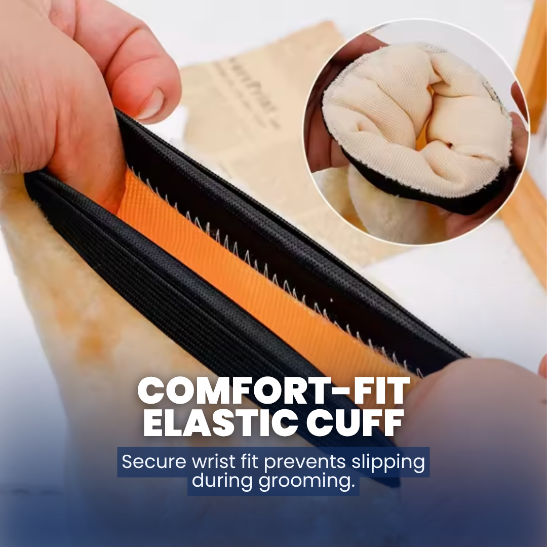 Made from thick imitation-wool plush, these gloves provide a velvety feel while maintaining strong grooming power, perfect for sensitive areas like the face, eyes, ears, and legs. The waterproof inner lining keeps your hands dry, making them ideal for wet or dry grooming.