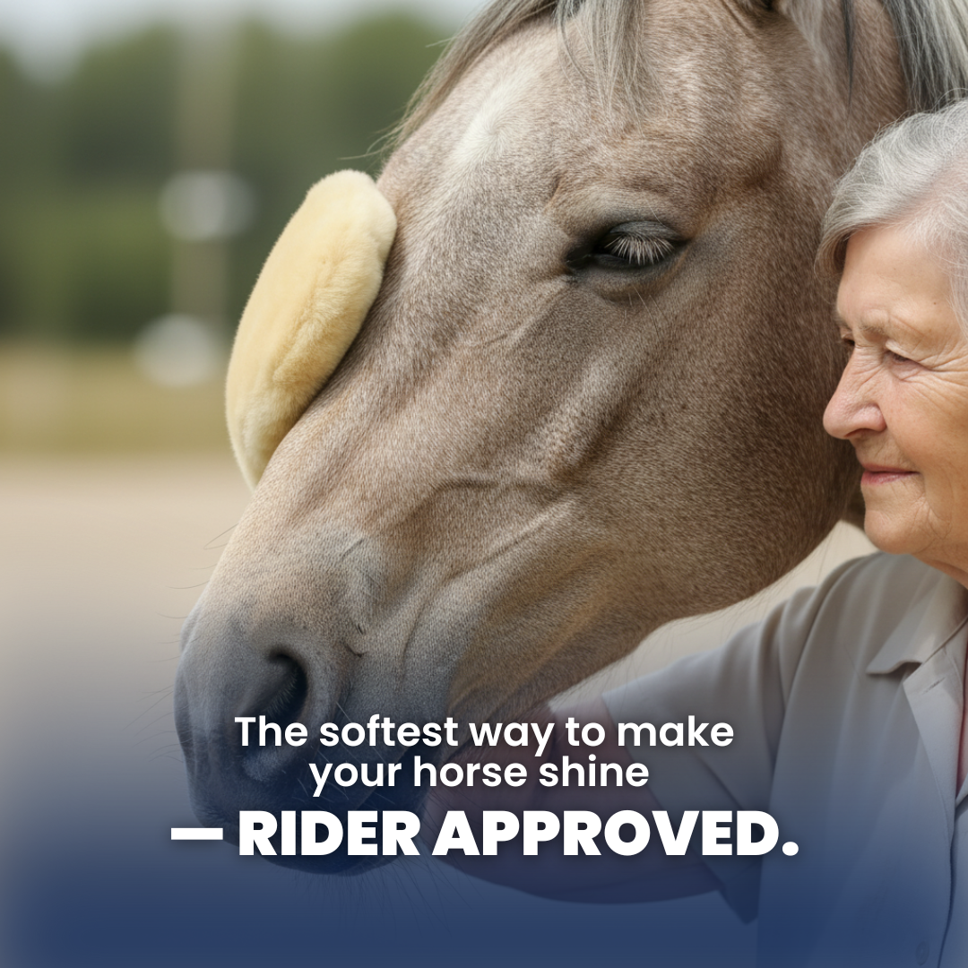 Benefits 💆 Comfort-Boosting Grooming: Soft texture relaxes horses and builds trust, ideal for anxious or sensitive equines. ✨ Show-Ready Shine Fast: Removes dust and lifts coat for a clean, polished look without sprays or water. 🚿 Easy Barn Hygiene: Shake or rinse clean after use, dries fast, stays fresh.
