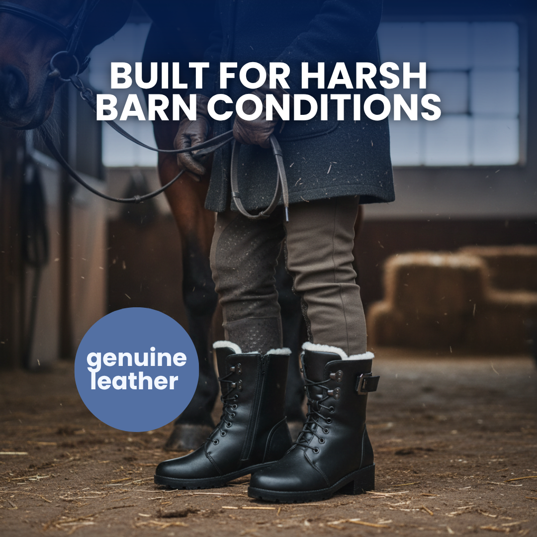 Benefits 🧊 Stay Warm While Riding & Working: No more frozen toes at the barn 🏇 Made for Equestrian Movement: Comfortable support for walking, mucking, and mounting 🌦 Built for Harsh Barn Conditions: Weatherproof, durable, and made to last