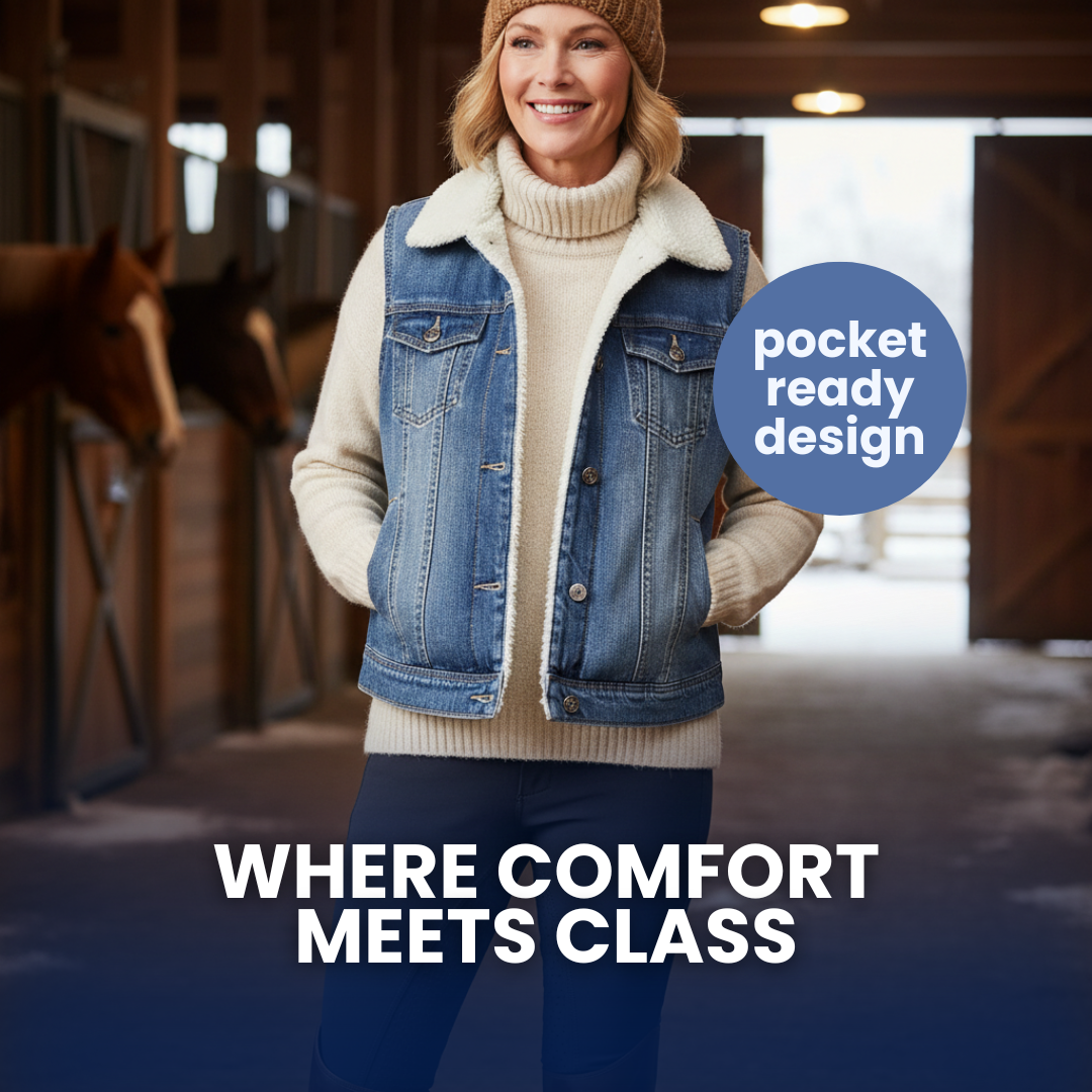 The Chevaroo Western Fur Jacket blends rugged western aesthetics with modern functionality, making it perfect for equestrians braving chilly rides. Featuring a soft fur lining and a durable denim-polyester blend, this jacket provides reliable warmth while ensuring comfort and mobility. Its turn-down collar and single-breasted closure add timeless western charm, while practical pockets make it ideal for carrying essentials around the barn or trail. With its retro-inspired design, this jacket keeps you warm and stylish, whether you're riding or relaxing after a long day with your horses.