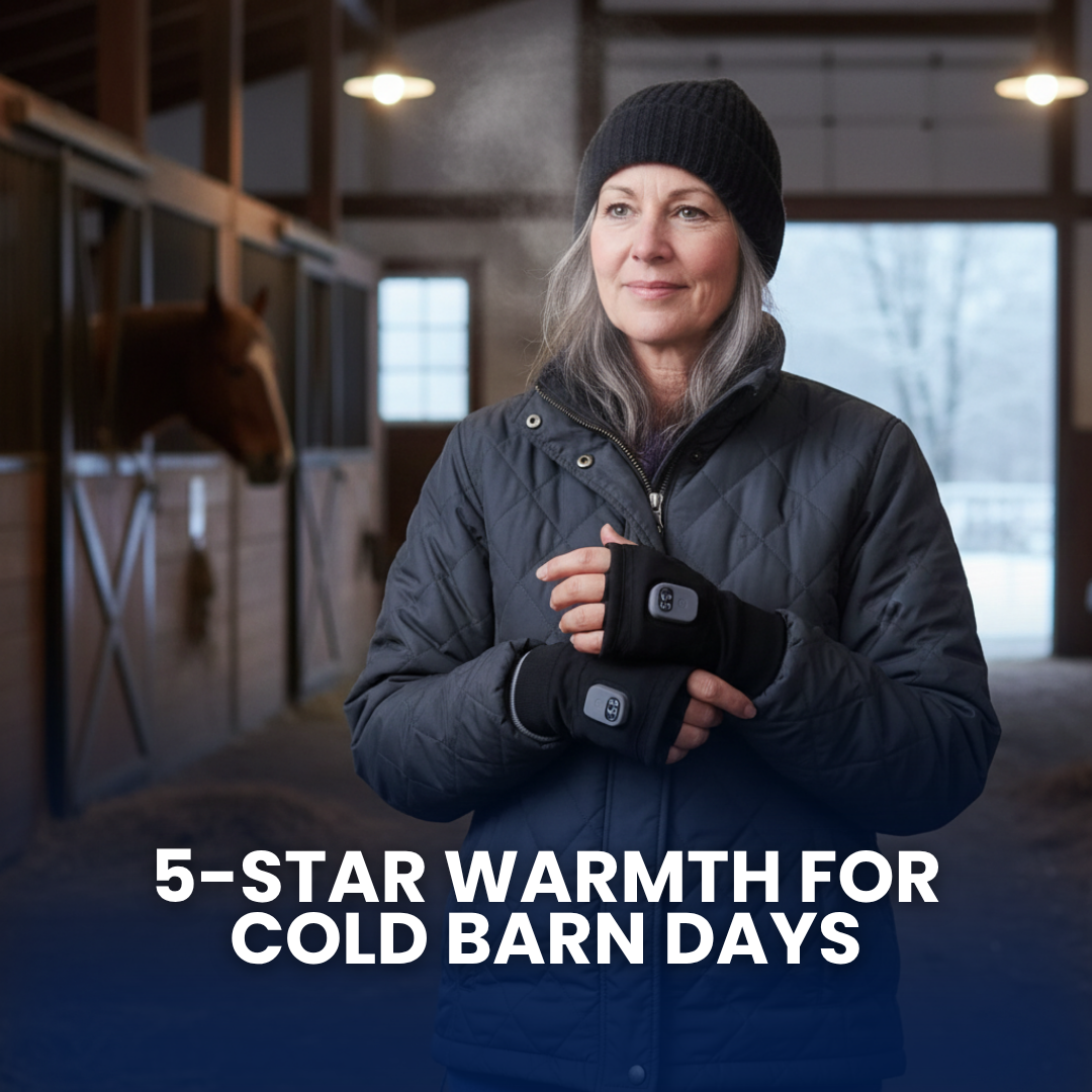 Benefits 🧤 Ride & Work Comfortably in Cold Weather: Keeps hands functional and warm during winter lessons, chores, or shows. 🐴 No Need to Remove Gloves for Tasks: Maintain dexterity for reins, buckles, grooming tools, and phones. 🌡 Consistent Therapeutic Warmth: Helps ease stiffness, numbness, or cold-induced pain in hands.