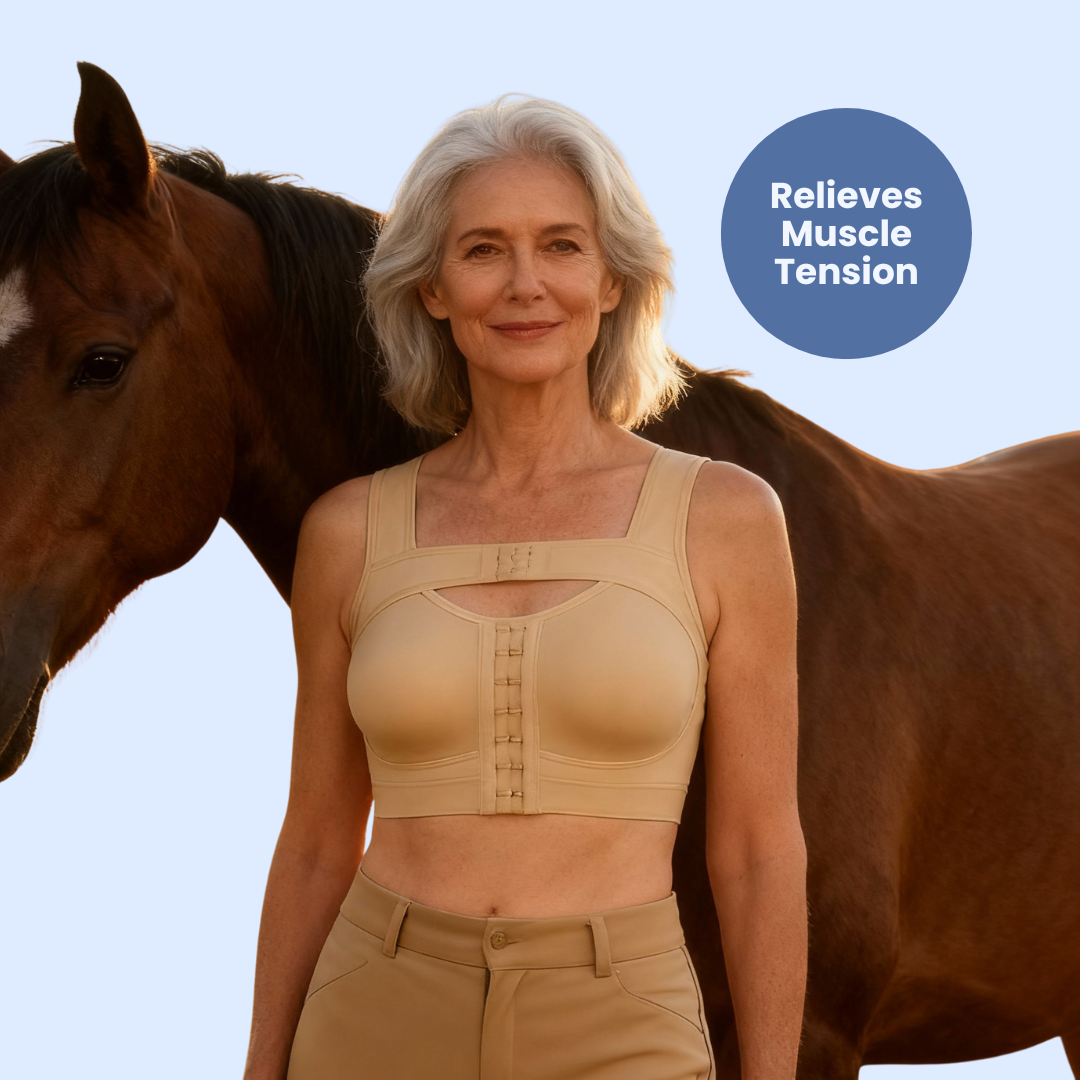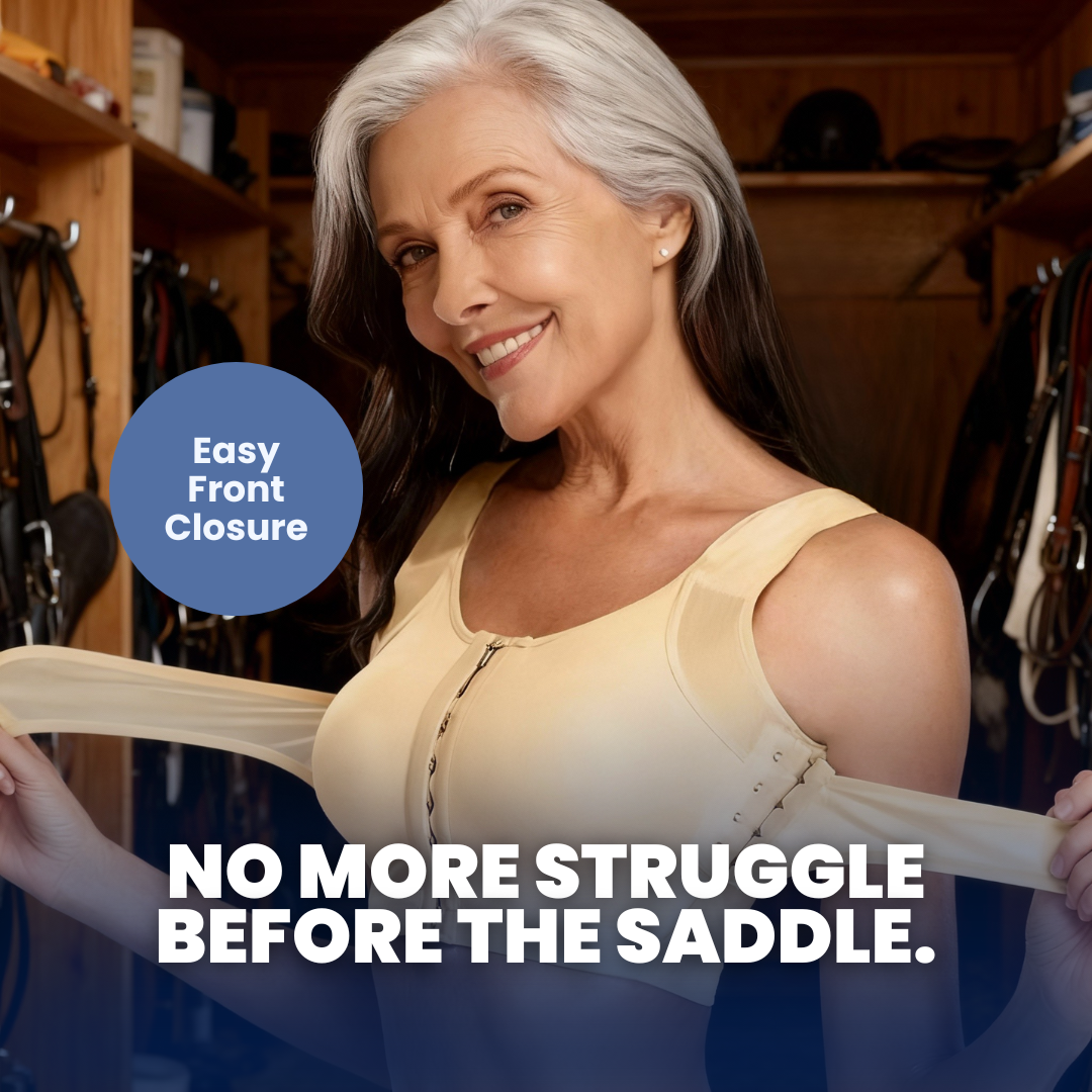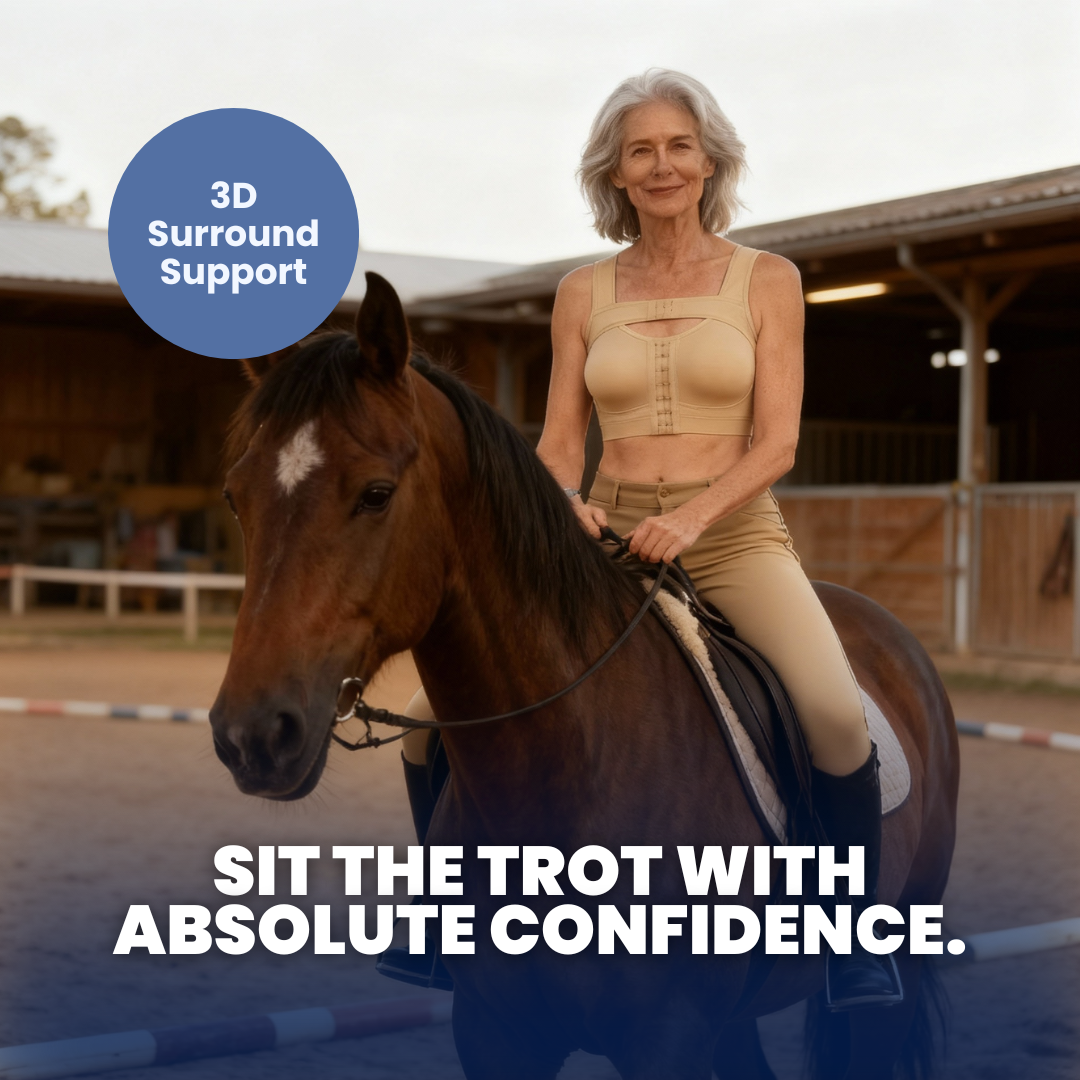 The Chevaroo Bounce Control Bra is engineered for equestrian women who want ultimate comfort, stability, and confidence in the saddle. Designed with firm control, 3D surround support, and posture correction, it minimizes bounce during trots, canters, and jumps—helping riders stay focused on their performance rather than discomfort. The front closure design makes it easy to wear, while the breathable DEVAR fabric keeps riders cool during training, shows, or long trail rides. Whether you’re competing or enjoying a casual ride, this bra delivers the support and security you need.