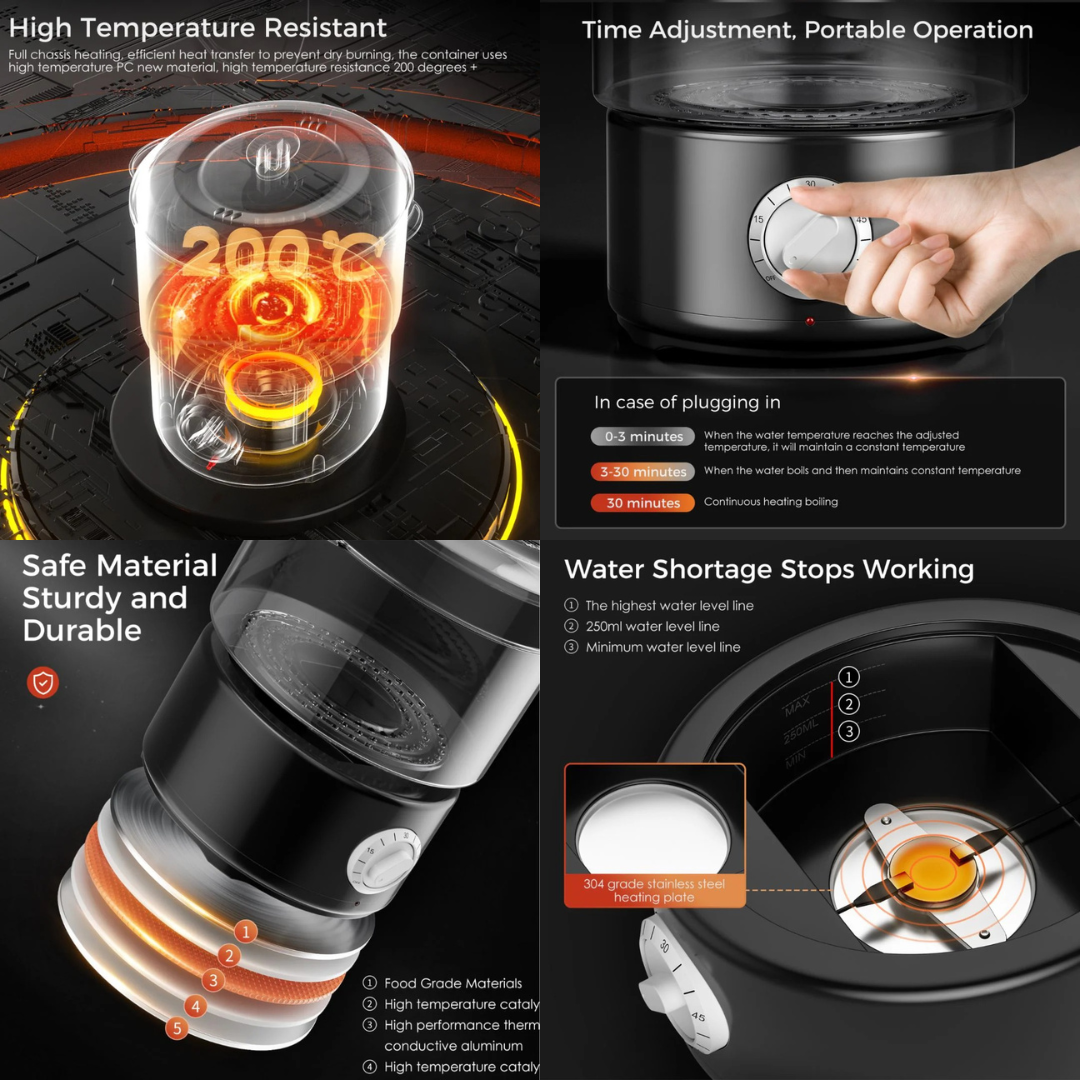🛡️ Auto Safety Shutoff (Low Water): Stops heating when water runs low to prevent risk