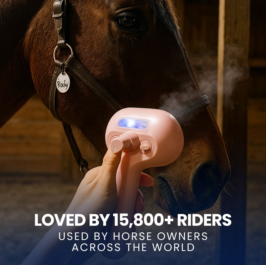 Yes, you can add a few drops of horse-safe essential oils to the water for a soothing, aromatic steam that can help calm your horse during grooming.